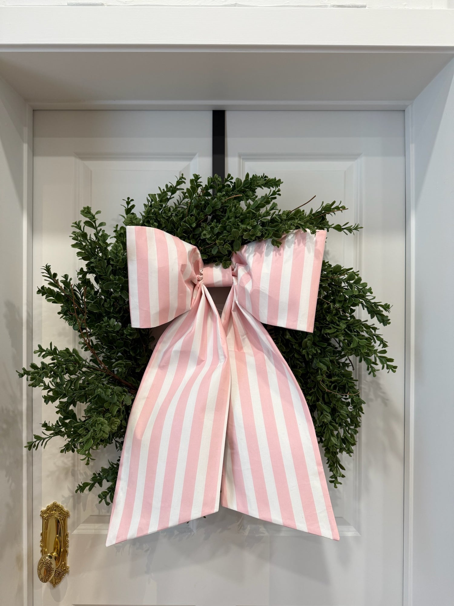 Our handcrafted fabric bows are sewn by local seamstresses and come in a variety of sizes and fabrics. Add extra ribbon or an add-in to make it your own or let it be the star of your wreath. While our online selection is slightly limited, we have plenty in the shop and are always happy to make something custom just for you.