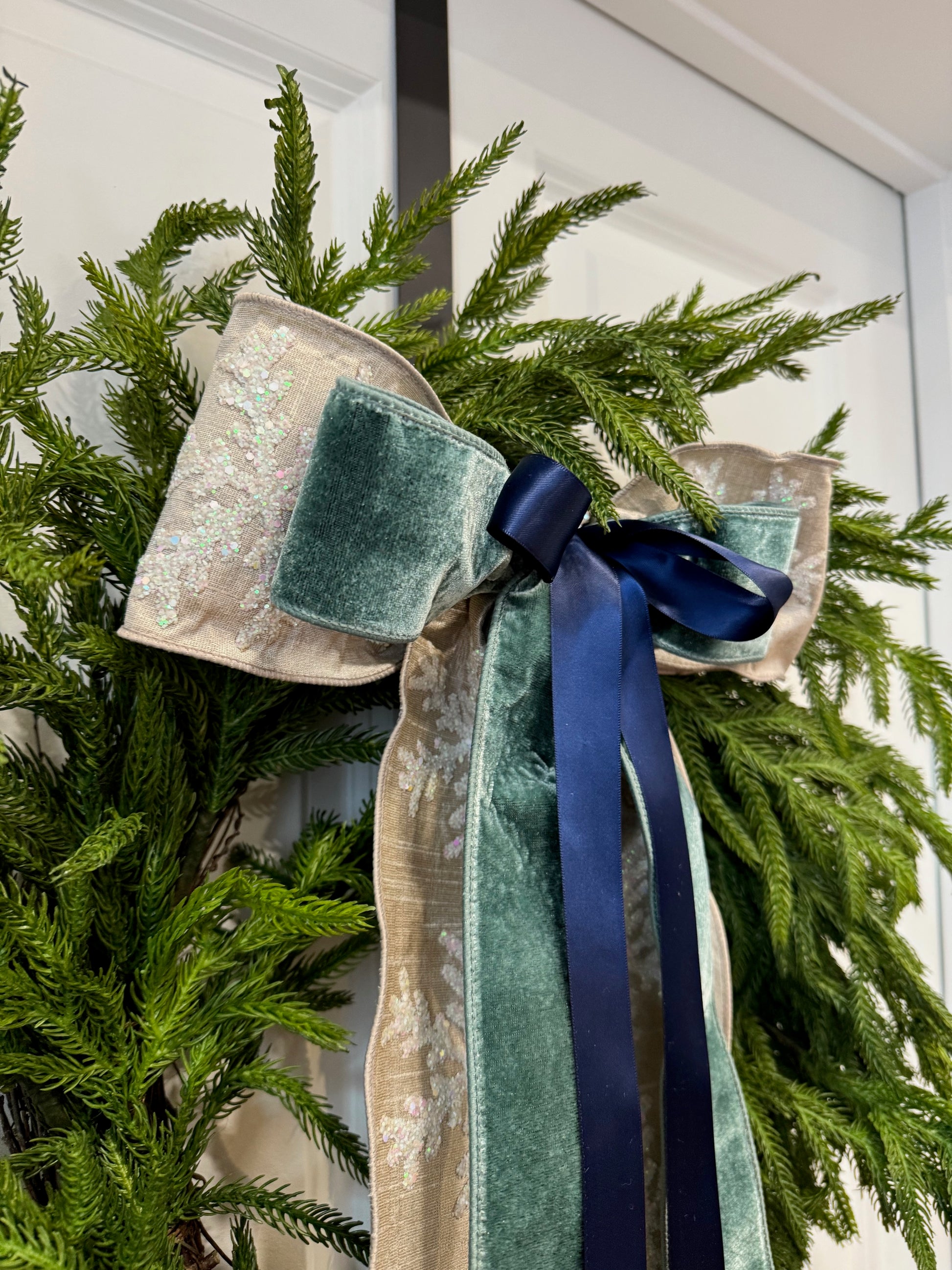 3 Bows of Winter pairs velvets and satins in a triple-bow design with coordinating colors and textures. A simple, elegant choice for your home.