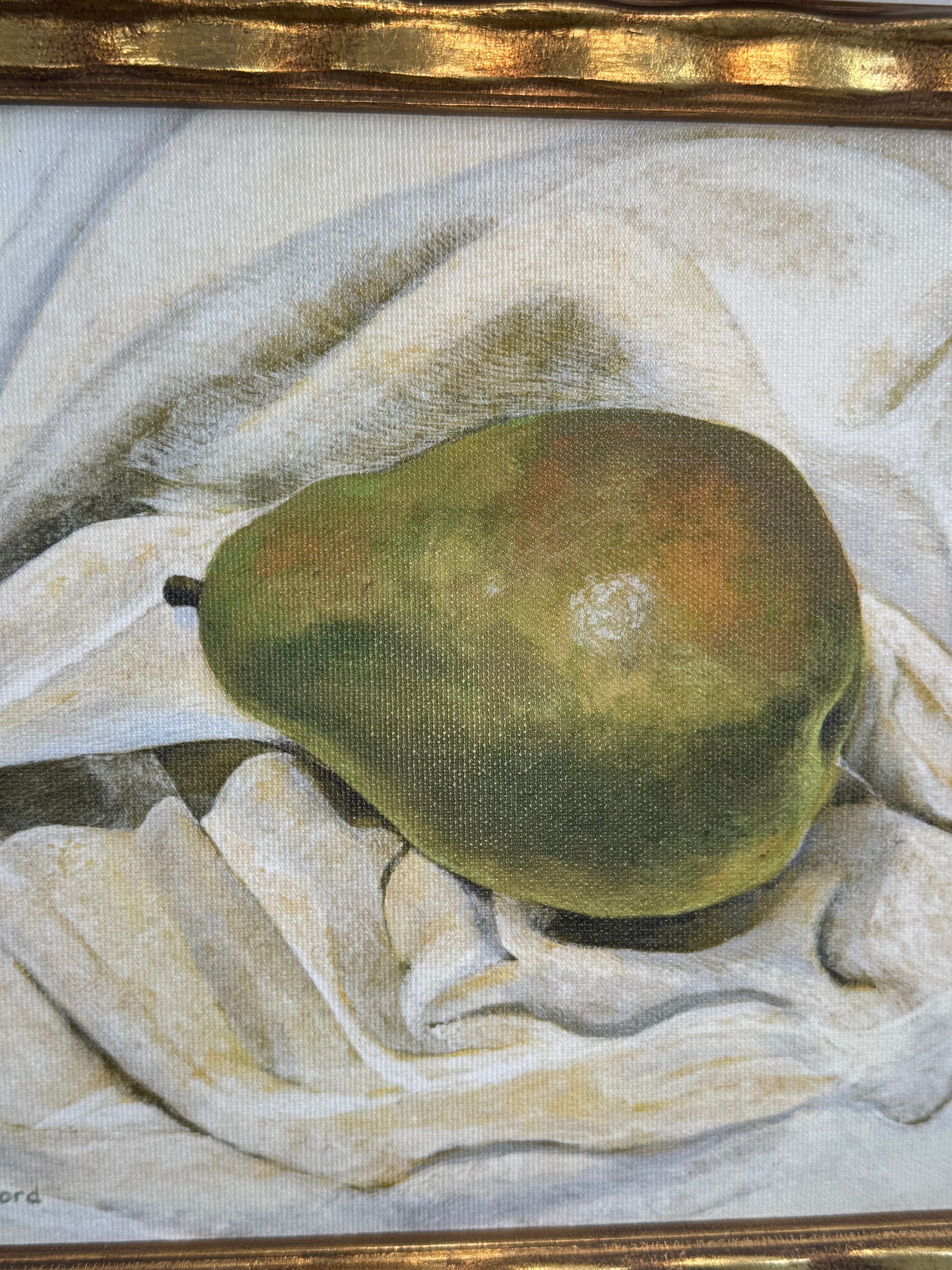 Anjou Pear painted by local artist, Colette Bradford, giclee on canvas, 8x10, Framed