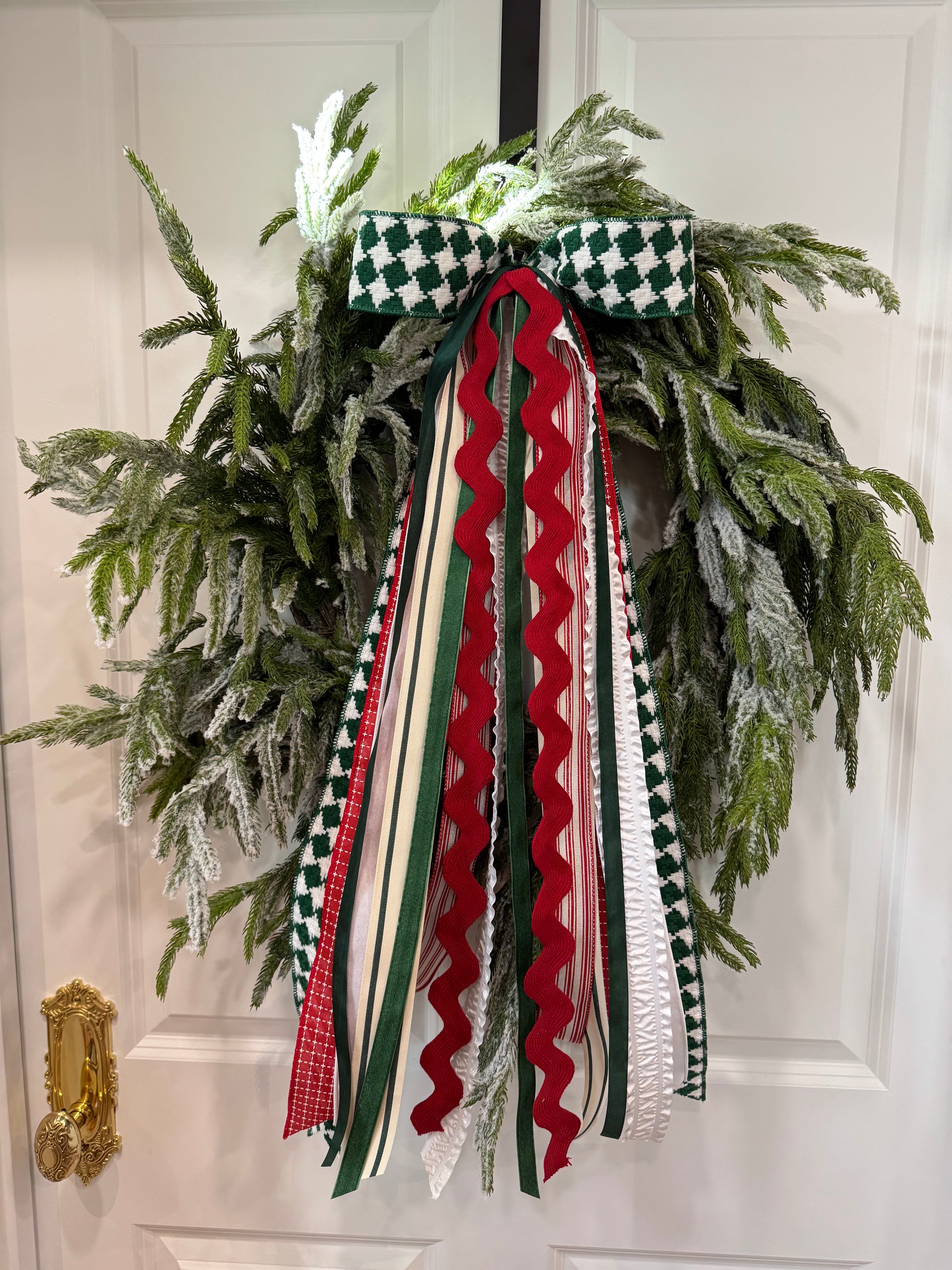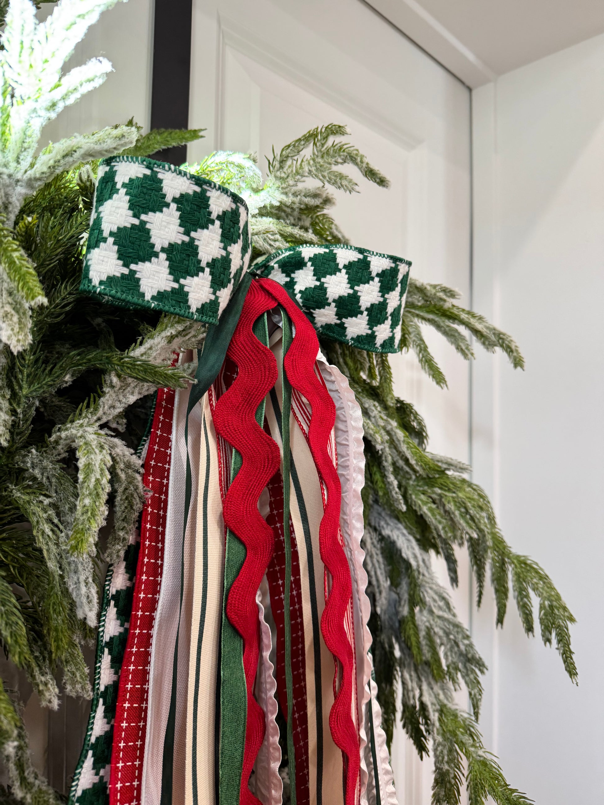 Glad Tidings We Bring has the most fabulous basket weave houndstooth bow in white & forest green.