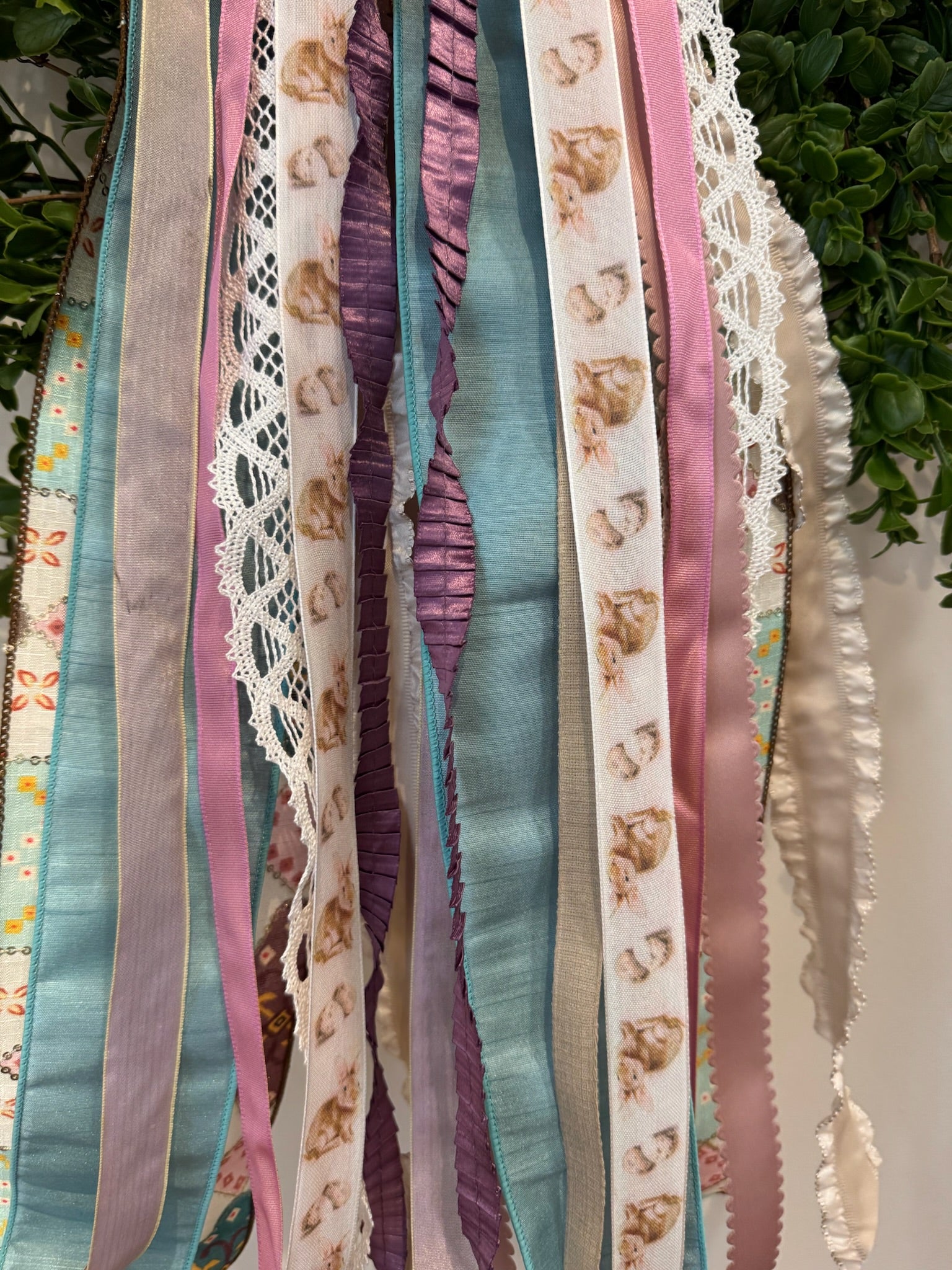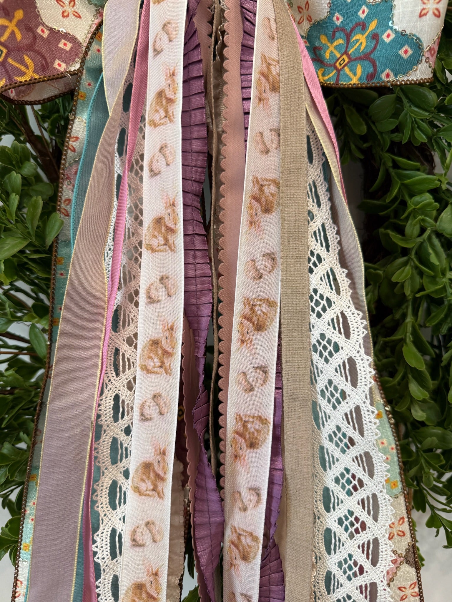 Bohemian Bunnies ribbon set features a free-spirited bow in a variety of pastel colors and designs outlined with soft, silver sequins, followed by perfectly coordinating ribbons in a variety of textures and colors, as well a sweet bunny on repeat.