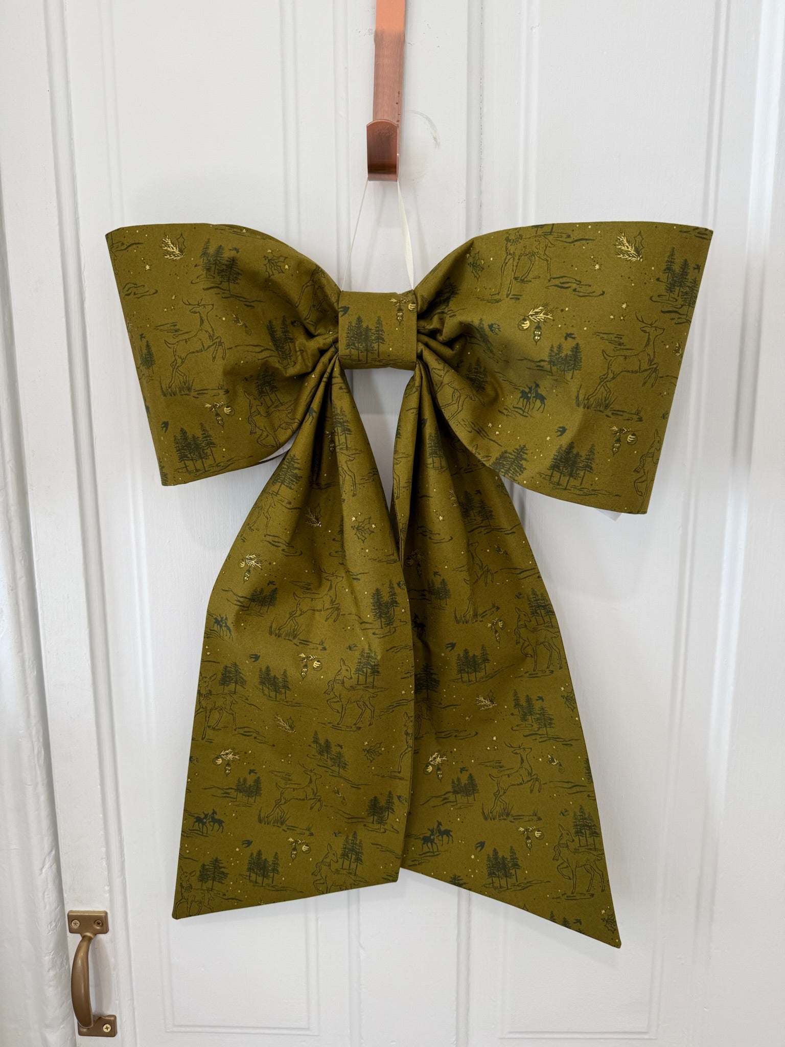 Made locally by our professional seamstresses. Dimensions are measured at the widest points. Depth is determined by you and can be flat or puffed out 2-5". All bows are handmade and sizes can vary slightly.