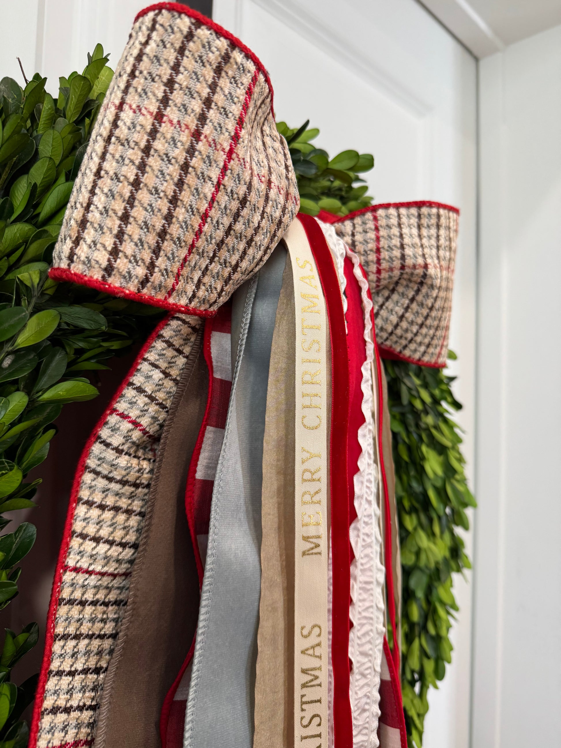 Happy Holiday Weaves features a colorful houndstooth bow, and so many perfectly blended ribbons in colors and textures that are calm, yet festive, just right for this holiday season.