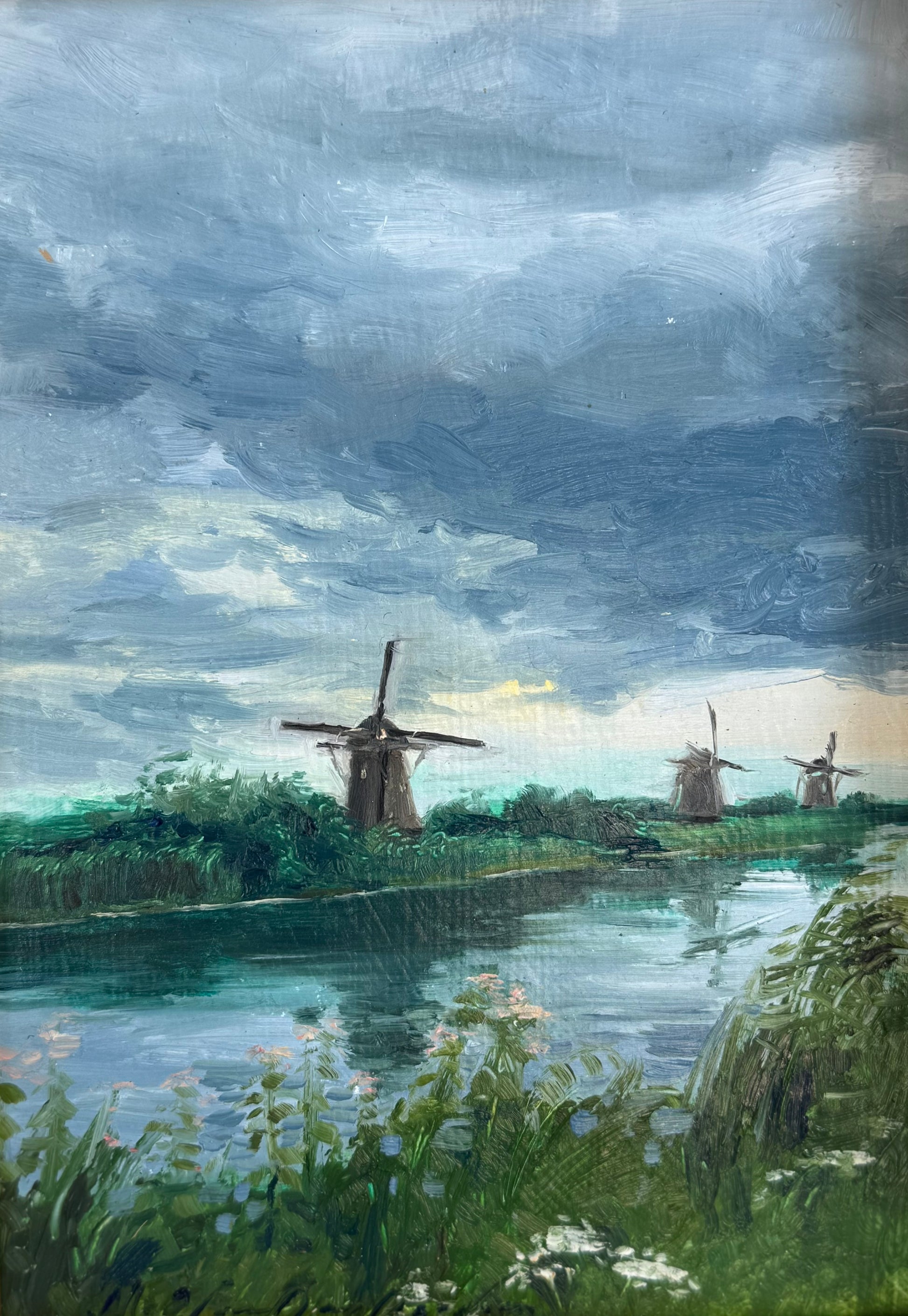 Kinderdijk in Viridian, Morgan VanDenberghe, Original, Oil on Matboard, 5x7, Framed