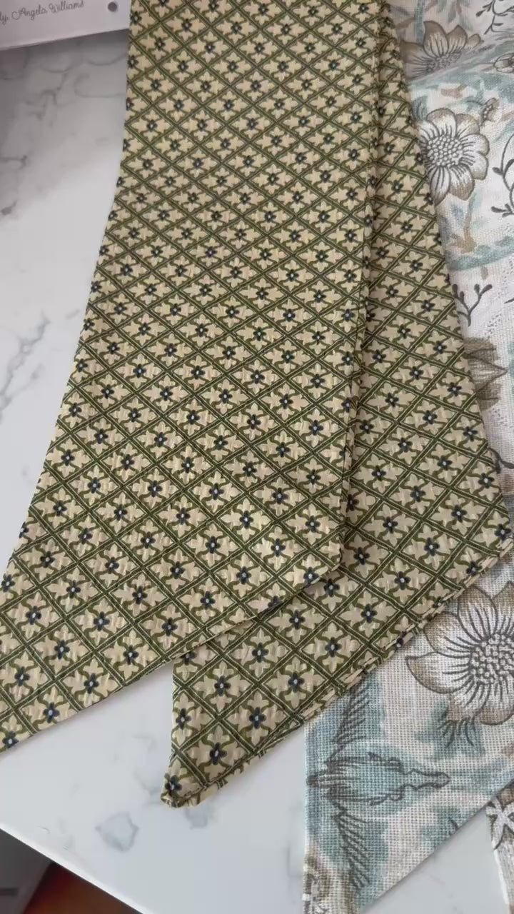 Our Lauren Oviatt Green Damask Sash is a stunning high-end fabric curated by Lauren and created locally by our professional seamstresses. All sashes are handmade and sizes can very slightly.