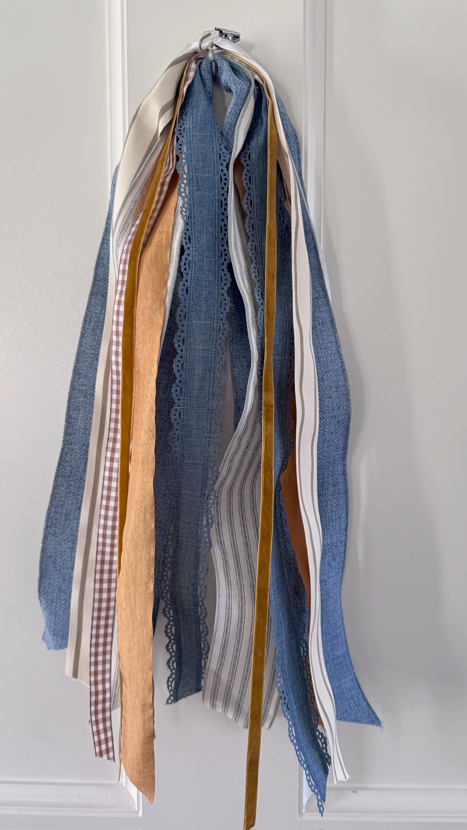 Our Lauren Oviatt Wedgewood Ribbon Set coordinates perfectly with our curated fabric bows, sashes and wreaths.