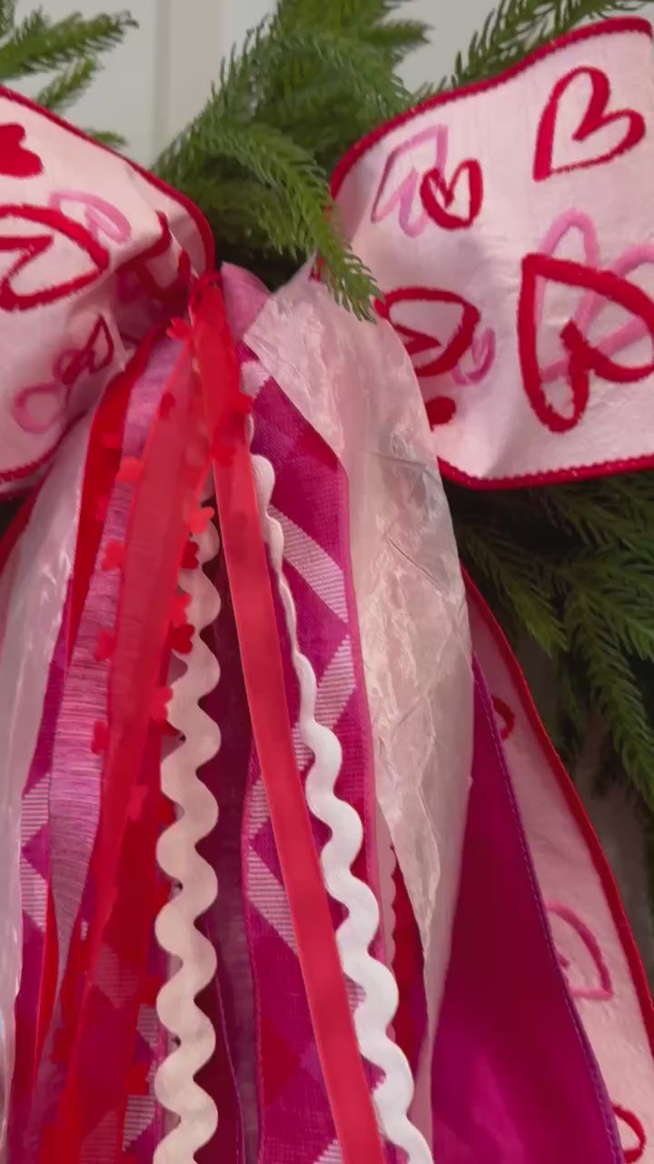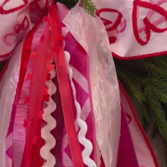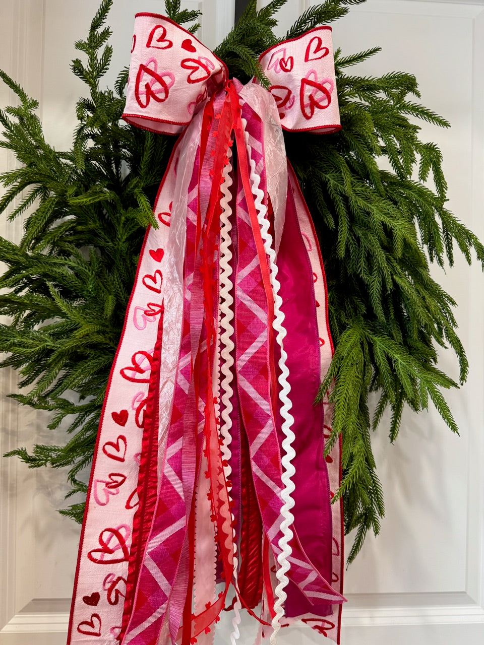 My Heart's All a Flutter ribbon set features a darling 4" embroidered heart bow along with fabulous ribbons in pinks, reds and whites. Including plaids, ricracs, sheer with mini hearts, solids & crepes. This set is sure to catch your heart.