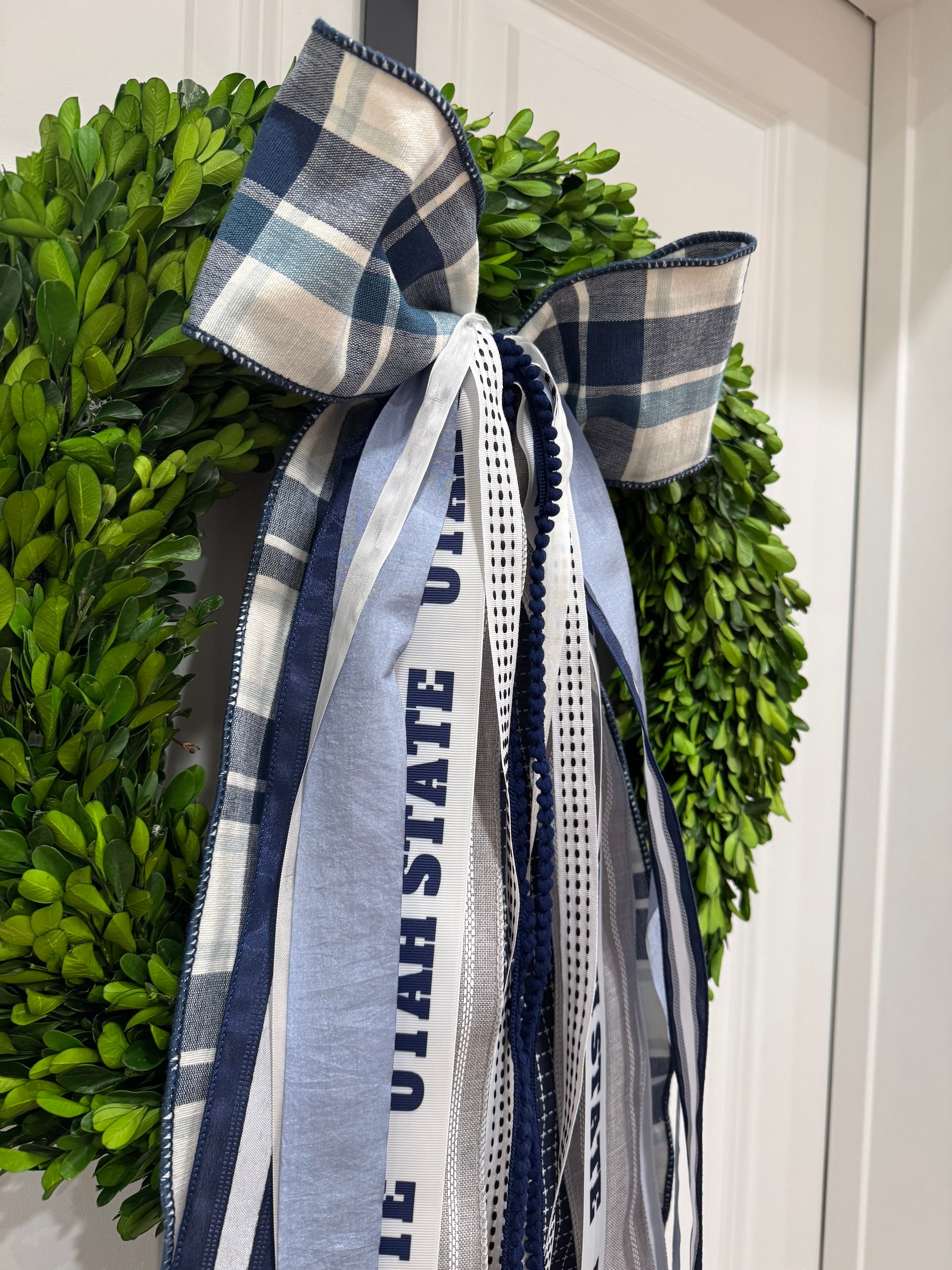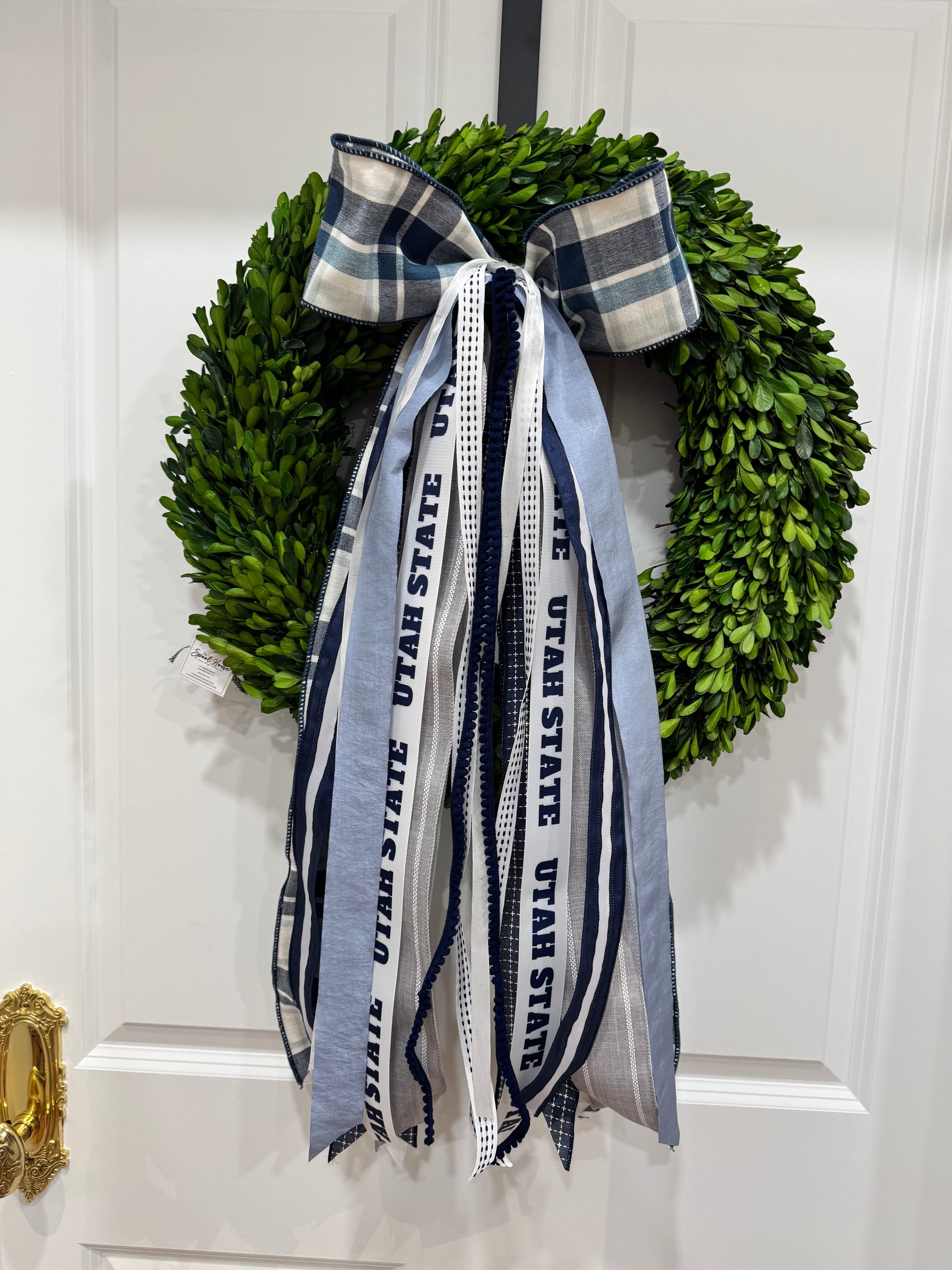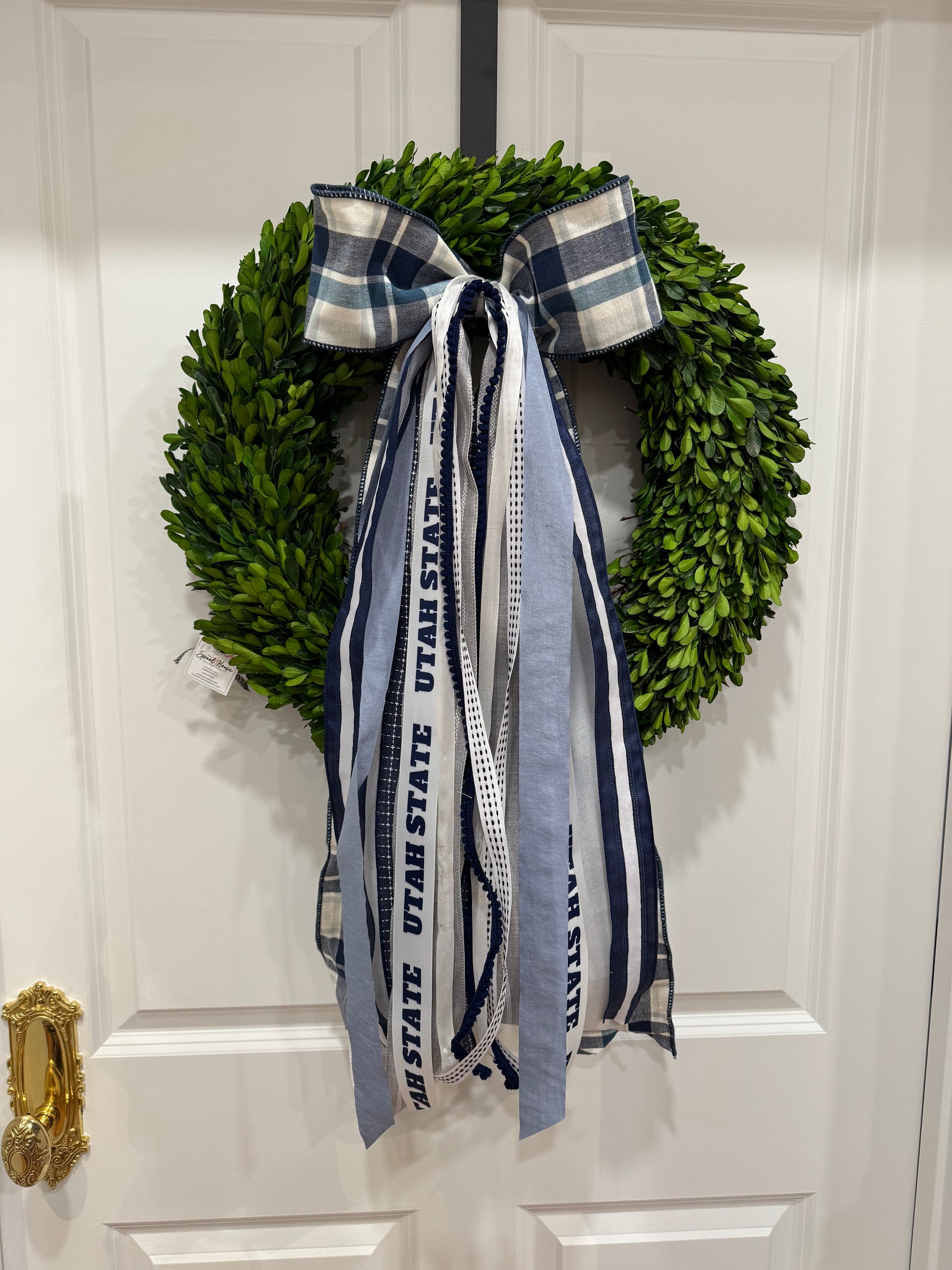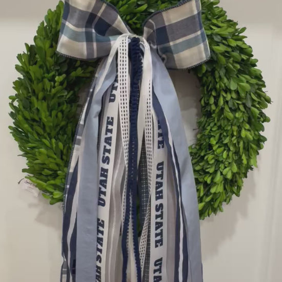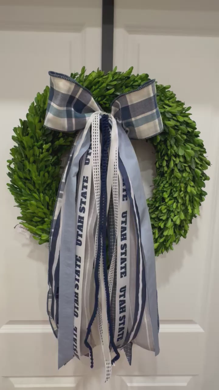 True Blue USU has a fun blue plaid bow with Aggie blues and whites mixed in. The ribbons that follow match perfectly with our True Blue USU ribbon set. Go Aggies!